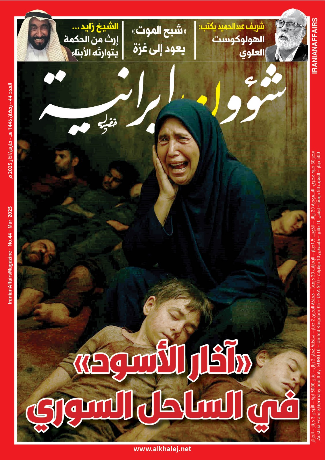 صدر العدد الرابع والأربعون من مجلة «شؤون إيرانية»، عدد شهر مارس/ شباط 2025، التي تُعنى بالوقوف في وجه أطماع ملالي طهران في المنطقة العربية، من أجل قطع الطريق على المشروع الطائفي التوسعي لـ «ذوي العمائم السوداء» في الشرق الأوسط، وهي تصدر عن مركز الخليج للدراسات الإيرانية.