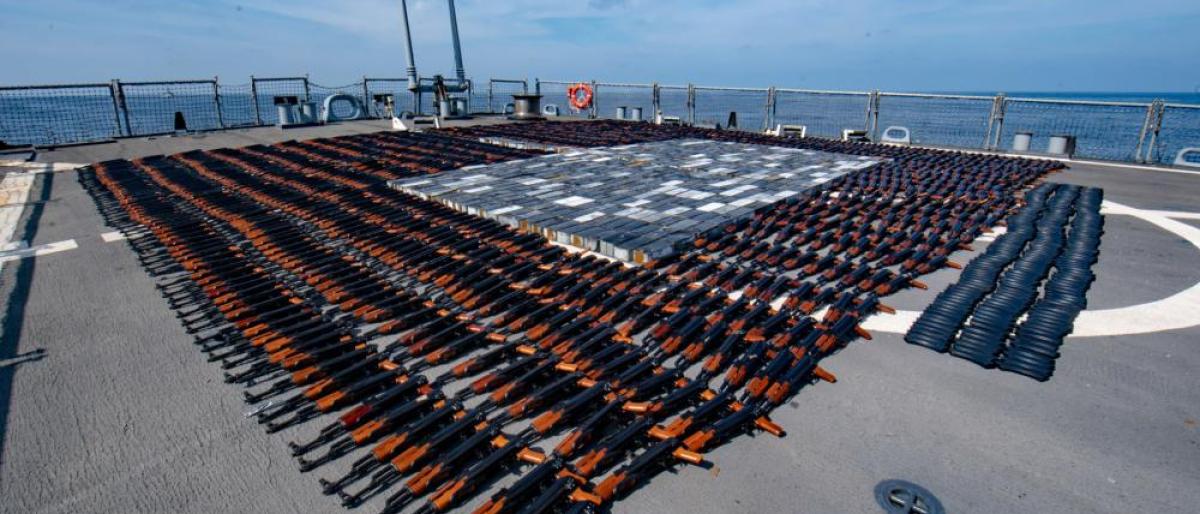 ويشير تقدير البحرية الأمريكية إلى أن القارب الذي يحمل الأسلحة إيراني الصنع، وقد عبَر المياه الدولية على طول طريق يُستخدم تاريخياً لتهريب الأسلحة بشكل غير شرعي للحوثيين في اليمن.