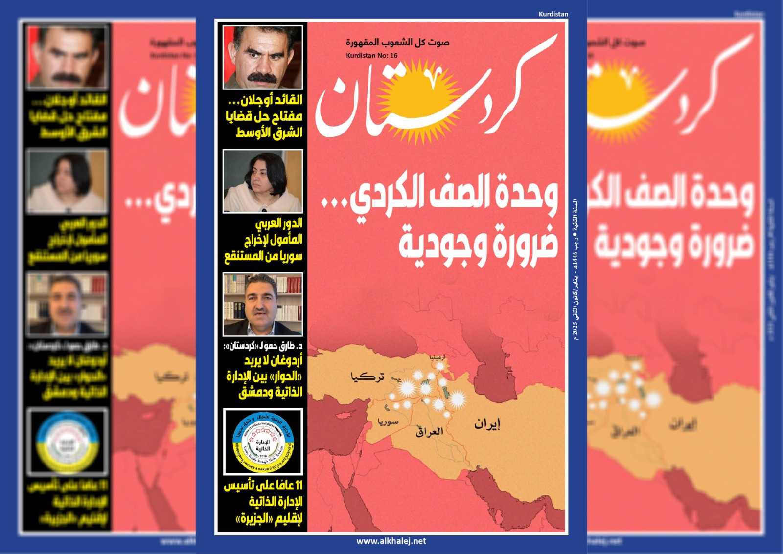 هذا هو العدد السادس عشر من مجلة «كردستان»، وهي مطبوعة جديدة وفريدة من نوعها في الإعلام العربي المعاصر، مهمتها هي دعم الشعوب المقهورة الساعية للحرية والاستقلال، وبيان الوجه الحقيقي المضيء للقضية الكُردية، التي لا يعرف القارئ العربي عنها الكثير، رغم التاريخ المشترك العريق للعرب والكُرد الذين عاشوا جنبًا إلى جنب في وئام وسلام لأحقاب طويلة.